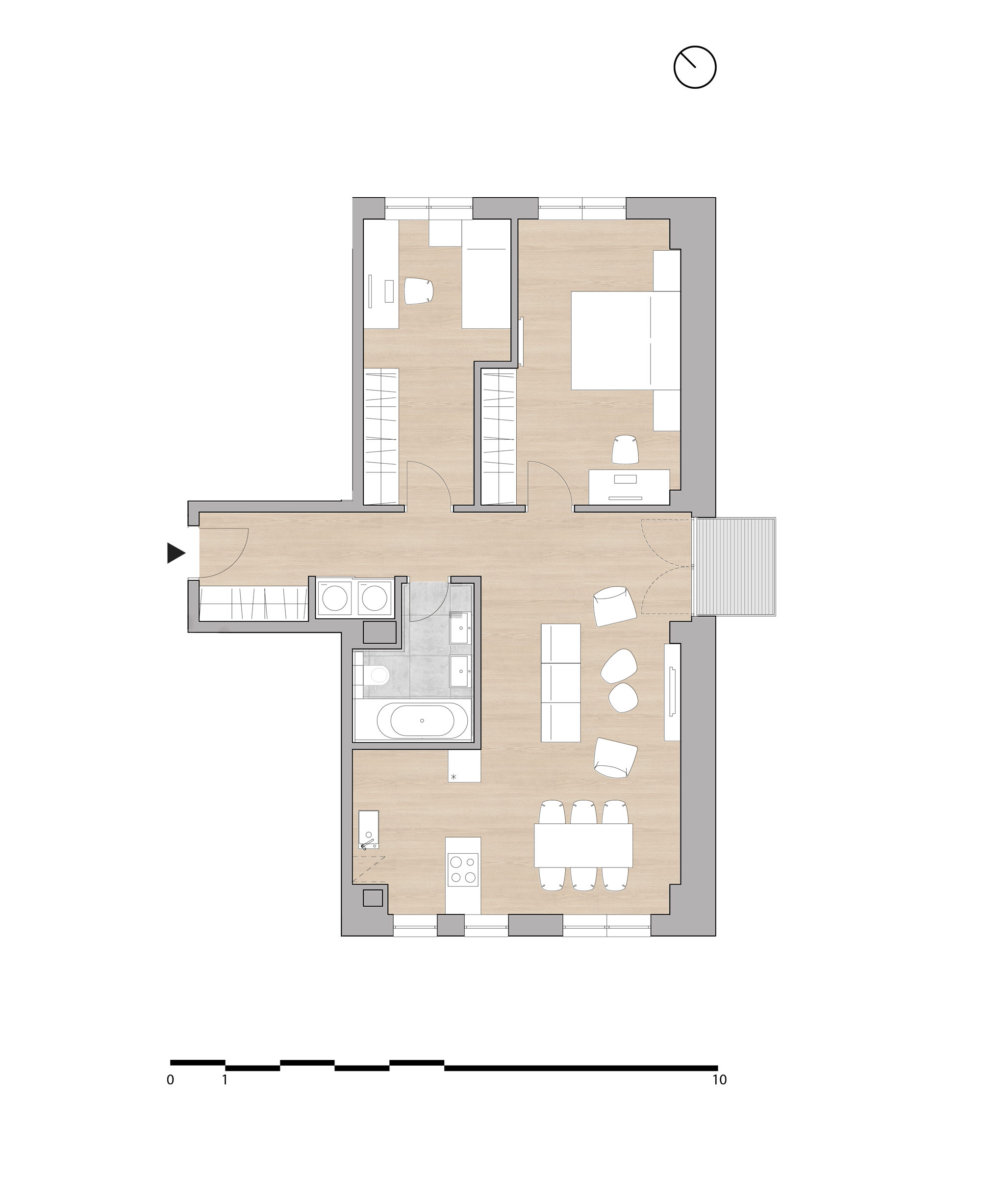 3 + kk. Bytová jednotka s orientáciou okien na 3 svetové strany. Za doplatok pivničný priestor.